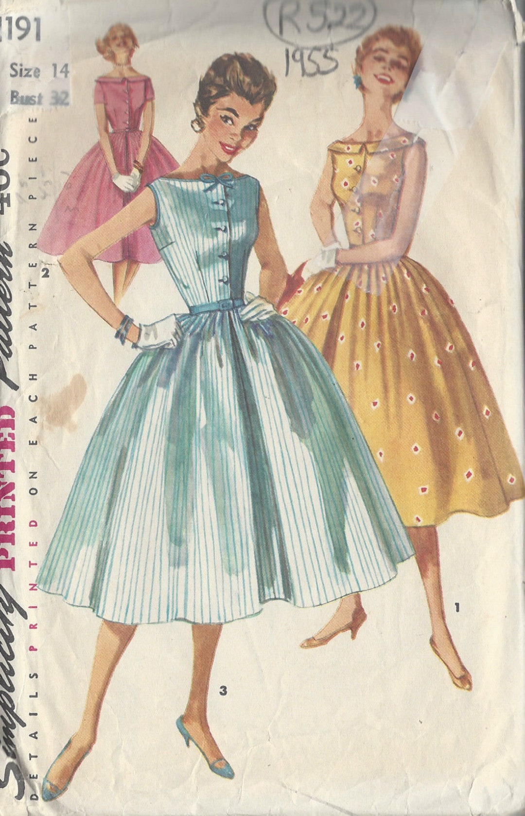 1955 Vintage Sewing Pattern Dress B32 R522 Simplicity Etsy